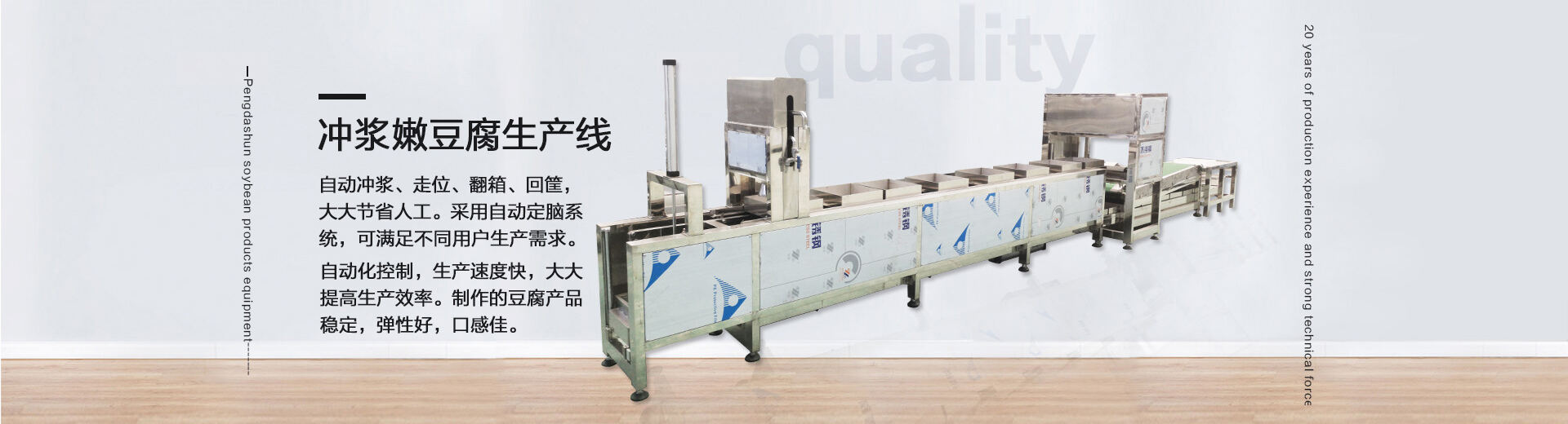 彭大順全自動豆皮機廠家地處八朝古都河南開封,是一家專業生產豆制品設備的廠家,主要研發、生產和銷售:豆腐機、豆腐皮機、豆腐干機、全自動豆皮機、大型豆腐生產線、千張生產線、百頁生產線、自動泡豆系統、自動清洗除渣系統、自動磨漿系統、自動煮漿機、自動點漿、自動上腦系統,公司以質量、工藝為根本,以服務、技術求發展。用心研發、科學規范化生產,用優質的產品和貼心的服務贏得客戶的信賴。